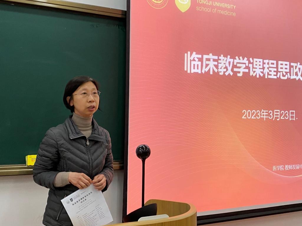 在汇报交流环节,附属第十人民医院余震老师汇报了医员工临床实习和见习中的思政教学情况;附属同济医院李颖老师从课程设计、教师培训、课程团队队伍建设等多方面分享了临床医学理论课教学中课程思政如何融入的经验;附属东方医院俞海萍老师就多学科情景模拟教学的思政设计进行汇报;附属上海市肺科医院陈娴秋老师以OBE课程的呼吸系统模块为例,谈了结合肺炎知识点的思政教学设计;附属第一妇婴保健院成星老师交流了住院医师规范化培训中的立德树人教育;附属杨浦医院葛许华老师结合《全科医学概论》教学谈如何加强其中的课程思政设计;康复公司(筹)的胡佳老师交流了康复治疗学专业教学整体的课程思政情况,着重介绍了如何培养教师的课程思政能力;护理公司(筹)曾莉老师交流了护理专业的课程思政建设。