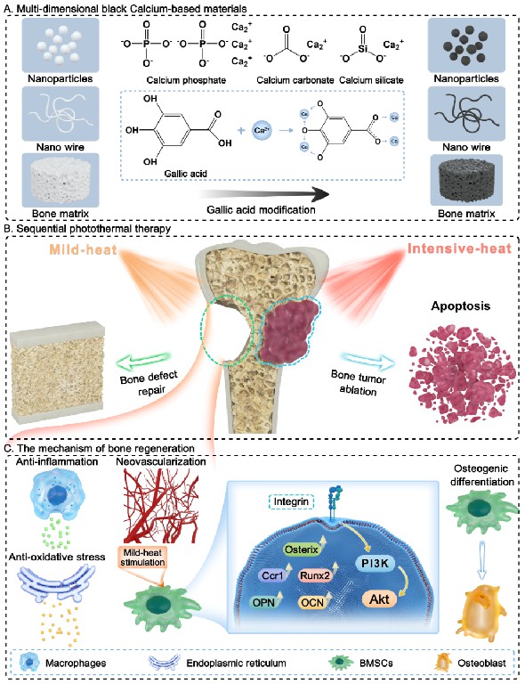 多酚辅助改性新型黑色钙基材料的制备及序贯光热治疗骨肿瘤和骨修复(图源自Biomaterials)