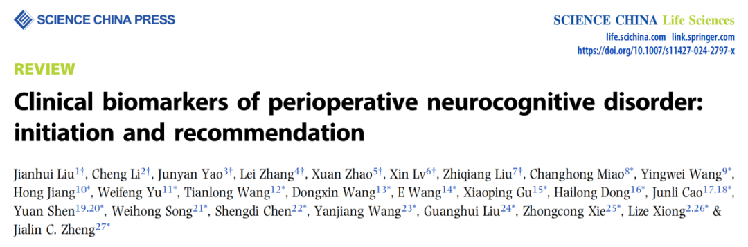 近日,来自围术期神经认知障碍(Perioperative Neurocognitive Disorder, PND)标志物研究联合体和中国衰老标志物研究联合体(Aging Biomarker Consortium,ABC)的多个课题组合作在Science China Life Sciences杂志发表了题为Clinical Biomarkers of Perioperative Neurocognitive Disorder: Initiation and Recommendation的文章。PND是老年患者在围术期常见且严重的神经并发症,显著影响术后的认知功能。目前,PND的诊断主要依赖于认知功能测试,但这一诊断方法存在主观性强、耗时长等局限。因此,筛选客观有效的PND生物标志物至关重要,这将有助于早期识别高危患者,为尽早干预和治疗提供科学依据。