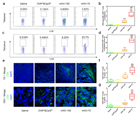 Figure 2.The tetramer assay of OVA-specific CD8+ T cells, and tumor-infiltrating condition of T cells elicited by mNVs in prophylactic test.