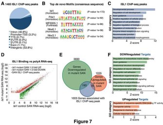 窦房结是心脏的起搏器官,由于窦房结的细胞数量少且难以分离,目前我们对窦房结起搏细胞的特异性表达谱,形成和功能的调控机制了解甚少。在这篇《Journal of Clinical Investigation》文章中,研究人员建立并详细分析了多种转录因子Isl1基因修饰小鼠模型,包括起搏细胞特异性Isl1敲除的小鼠模型,揭示了Isl1在心脏起搏细胞的形成和起搏功能中的调控作用;在窦房结的形成过程中,Isl1对起搏细胞的增殖分化和存活至关重要。通过对分离纯化的起搏细胞的高通量转录组测序(RNA-seq)和染色体共沉淀测序(ChIP-seq)分析,发现了窦房结的特异性基因调控网络和Isl1的直接调控靶点。研究表明Isl1直接调控了多个心律/率的关键调控基因的表达,包括人类窦房结功能障碍的致病基因的表达,提示Isl1的变异可能与人类窦房结功能障碍密切相关。该研究为窦房结功能障碍的治疗提供了新的思路,为生物起搏器研发奠定了基础。