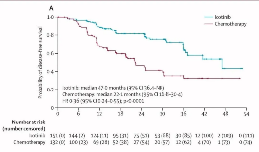 EVIDENCE研究是国内首个非小细胞肺癌术后辅助治疗领域的注册临床研究,由肺科医院肿瘤科周彩存教授和广州医科大学附属第一医院何建行经理共同牵头,全国共29家中心参与,研究历时六年,入组322例II-IIIA期术后EGFR突变阳性受试者,按1:1随机分组,试验组给予EGFR-TKI埃克替尼125mg TID口服治疗2年,对照组给予标准辅助化疗组长春瑞滨/顺铂或培美曲塞/顺铂化疗4周期后随访,直至复发、不耐受或死亡。主要研究终点为无病生存期(DFS),关键次要研究终点为3年和5年DFS生存率、OS和安全性。