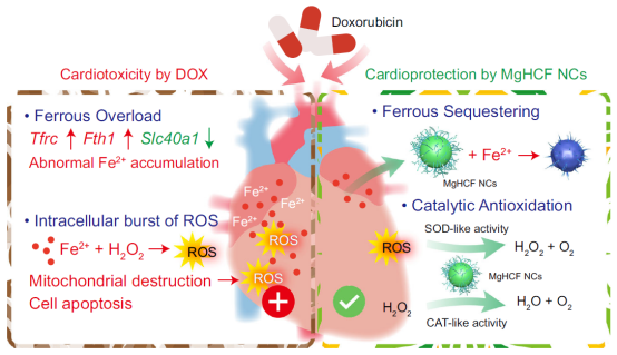 图1. 铁氰酸镁纳米催化剂(MgHCF NCs)缓解阿霉素药物诱导的心脏毒性
