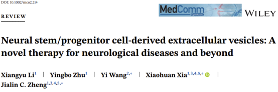 本综述全面总结了NSC-EVs在神经退行性疾病、急性神经系统疾病、痴呆/认知功能障碍疾病等各类神经疾病中的功能研究和应用进展,讨论了NSC-EVs目前存在的研究局限性和未来临床应用中存在的挑战,展望了NSC-EVs进一步的研究方向和在临床/基础研究中的应用前景。本综述发表于Wiley发行的Medcomm,伟德国际victor1946郑加麟教授、夏骁寰研究员、王奕副教授为本文共同通讯作者,博士生李乡雨为文章第一作者。