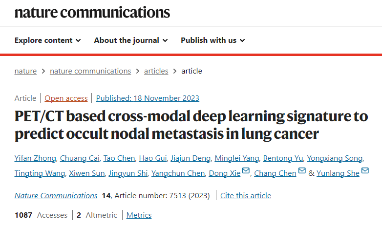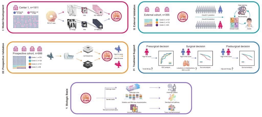 肺癌患者临床N分期的准确诊断,是指导治疗决策的关键。对于可手术切除的临床N0期非小细胞肺癌(NSCLC),仍然有患者在术后被证实存在淋巴结转移,即隐匿性淋巴结转移(ONM)。目前,正电子发射断层扫描/计算机断层扫描(PET/CT)作为NSCLC临床N分期无创性检查方法,其ONM的发生率仍然在12.9%-39.3%。因此,如何在术前准确地识别ONM人群是临床亟需解决的关键问题。随着人工智能图像处理技术的发展,目前深度学习已经成为PET/CT图像分析的有效手段,该方法可同时利用PET和CT图像信息,实现癌症的诊断以及治疗获益的预测。为此,伟德国际victor1946附属上海市肺科医院陈昶教授团队开展了一项多中心研究,旨在建立并验证可预测临床N0期NSCLC患者ONM的PET/CT深度学习图像模型,该研究结果于近日发表于Nature子刊《自然·通讯》(Nature Communications)。