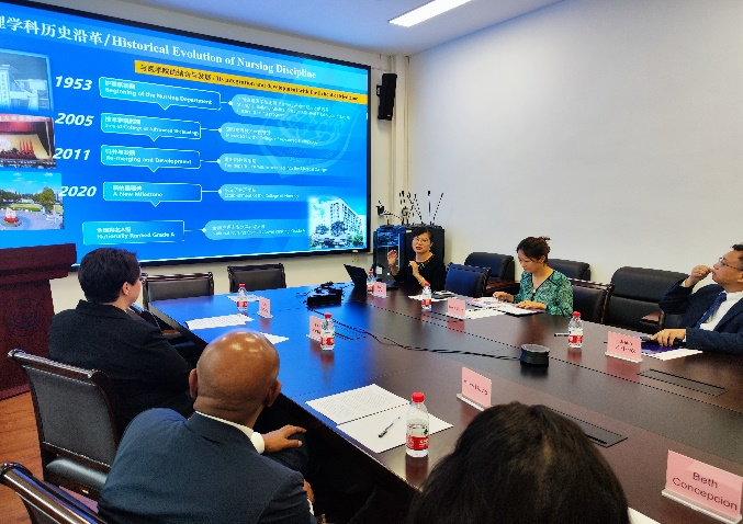 Professor ZHENG Jialin, Dean of TUSM, CHEN Cuiping, vice Dean of the School of Nursing (at preparatory stage), representatives from the Office of International Education and Cooperation, as well as nursing faculty members from two affiliated hospitals, ShanghaiTenth People's Hospital and Shanghai First Maternity and Infant Hospital, attended the meeting.