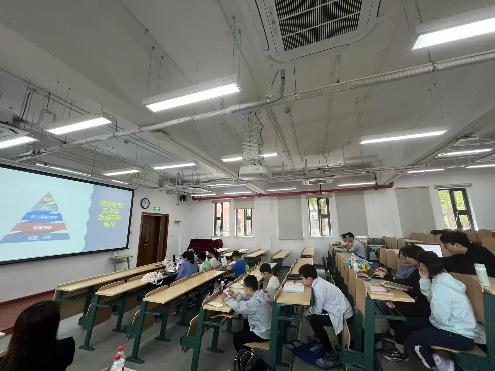 故事模型搭建环节是本次活动的核心之一。孩子们运用老师提供的“角色+场景+冲突”故事模型,将普通的家庭旅行改编成冒险故事,摆脱平铺直叙的叙事方式。在故事模型搭建完成后,老师进一步引导他们运用情绪曲线创作法,让笔下的文字如电影镜头般精彩。孩子们沉浸在创作中,尽情发挥想象力,故事充满跌宕起伏的情节。