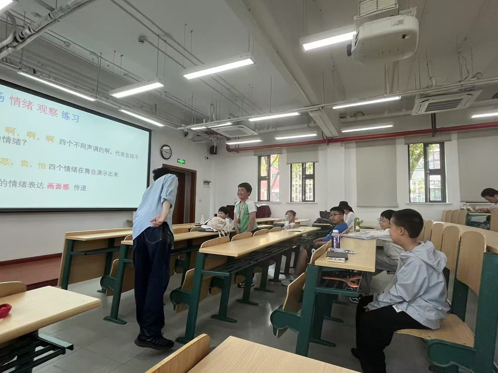 “人物显微镜”环节同样趣味十足。老师播放无声视频,带领孩子们观察视频中人物的情绪,解读表情背后的故事。在这个过程中,孩子们逐渐掌握细致观察的技巧,学会从细微处挖掘故事,有效提升观察力与想象力,为写作提供更多灵感,也告别了作文描述空洞、不知如何精细化表达的困扰。