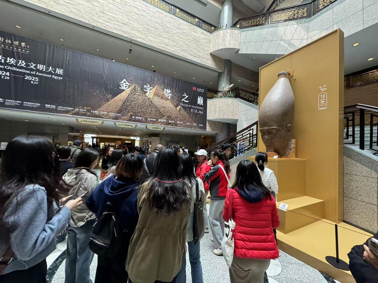 在 “法老的国度” 展厅,员工们仿佛置身于古埃及的历史长河中,通过沉浸式的设计,逼真复刻的古埃及哈布神庙廊柱场景,深刻体验了古埃及文明的发展脉络。在 “萨卡拉的秘密” 展厅,大家近距离欣赏到彩绘木棺、动物木乃伊等最新出土的埃及文物,深入了解了古埃及的宗教信仰、墓葬习俗以及动物崇拜等文化。而 “图坦卡蒙的时代” 展厅则通过图坦卡蒙及其家族相关的文物,如巨型雕像等,生动展现了这位少年法老所处时代的历史背景、宗教改革以及背后丰富的故事。