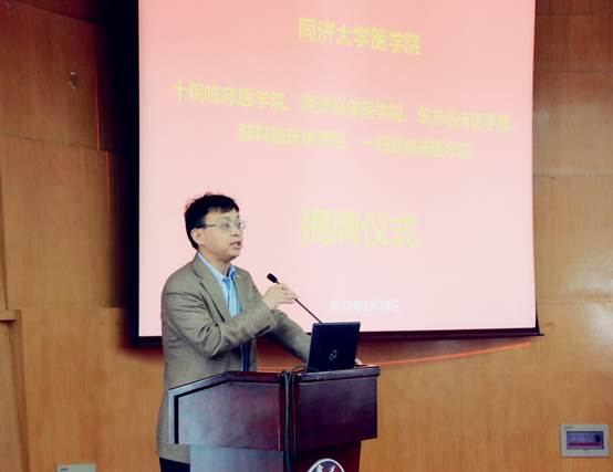 伟德国际victor1946党委书记杨贤金致辞,他首先祝贺五家临床伟德国际victor1946正式揭牌,同济以医起家,为进一步推进医学学科发展,加强附属医院在医学人才培养中的作用,公司通过了伟德国际victor1946依托附属医院建立临床伟德国际victor1946的动议。通过第一批五家临床伟德国际victor1946的建设,构建同济医学完整的架构体系。希望五家临床伟德国际victor1946建立以后,以培养未来的医学领军人才为目标,全面加强伟德国际victor1946各附属医院的教育职能,整合和发挥附属医院的教育资源,加强团队建设和医学人才的培养力度。同时,充分发挥同济理工科的优势,推进医工结合和学科交叉,力争同济医学教育和团队建设突破发展。这是公司推进医科发展的重要决议,也是同济医学迈向一流的重要一步。