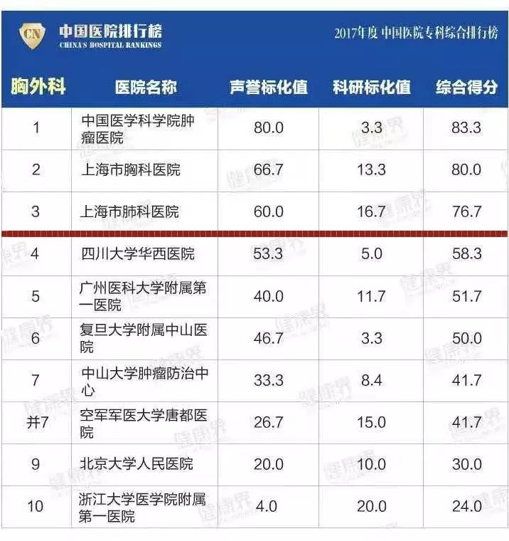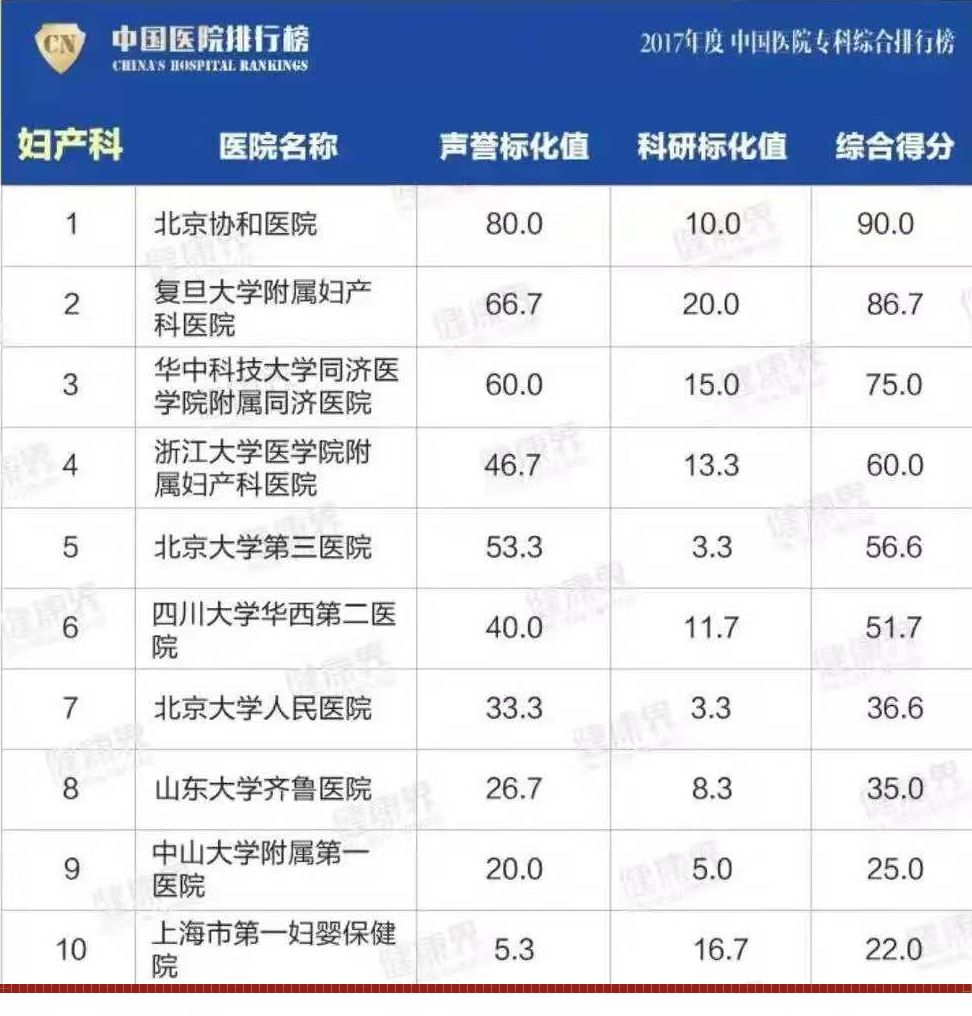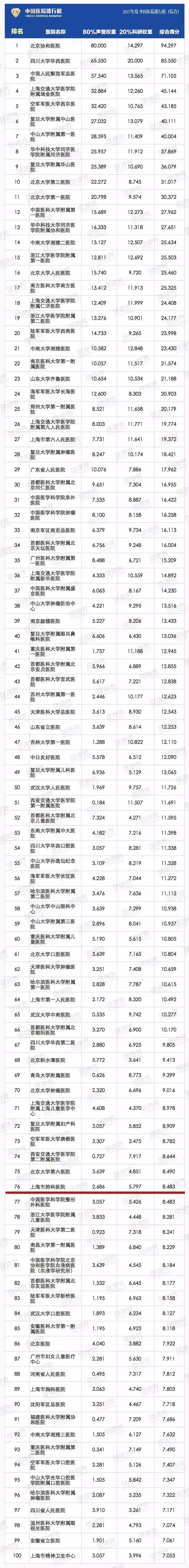 2017年度医院排行榜 (综合)