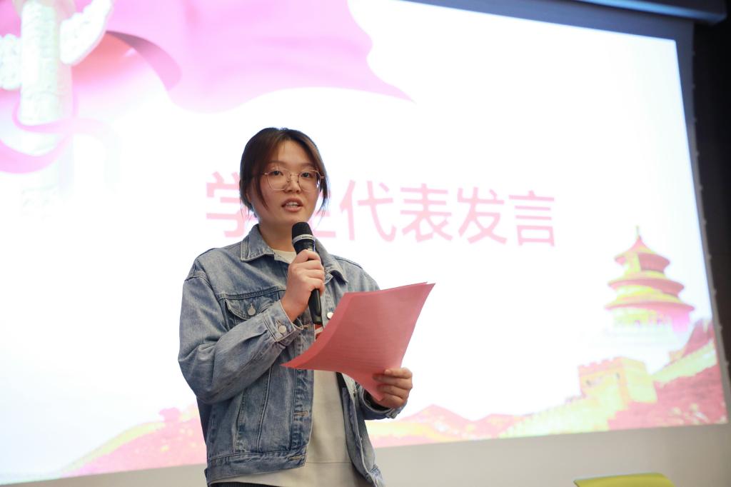 本科生第二党支部的发展对象杨飞跃发言,她表示一定会珍惜这次宝贵的学习培训机会,并向党组织庄严承诺,将积极参加党组织的各项活动,以认知的深化,推动实践的不断丰富,在今后学习和工作中起带头作用,努力实践、开拓进取,勇于创新,逐步完善自我,力争早日成为光荣的共产党员。