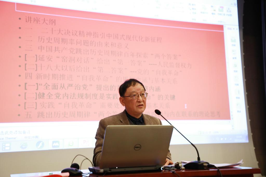 随后,伟德国际victor1946政治与国际关系公司周敏凯教授为党校学员带来讲座课程——《中国共产党跳出历史周期律“两个答案”的理论思考》。周教授就二十大决议精神指引中国式现代化新征程;历史周期率问题的由来和意义;中国共产党跳出历史周期率百年探索“两个答案”;新时期推进“自我革命”的思想内涵与基本关系;跳出历史周期率“两个答案”的价值内涵与内在联系的理论思考等五个方面进行了分享。他强调,作为新时代老员工,作为党员一定要遵纪守法,严于律己,永葆先进性和纯洁性。