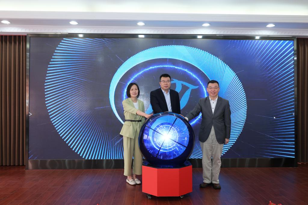 挂牌仪式现场,孙真荣、胡鸿毅和普陀区委副书记周艳,共同点亮“启动球”,附属普陀人民医院新院标正式启用。