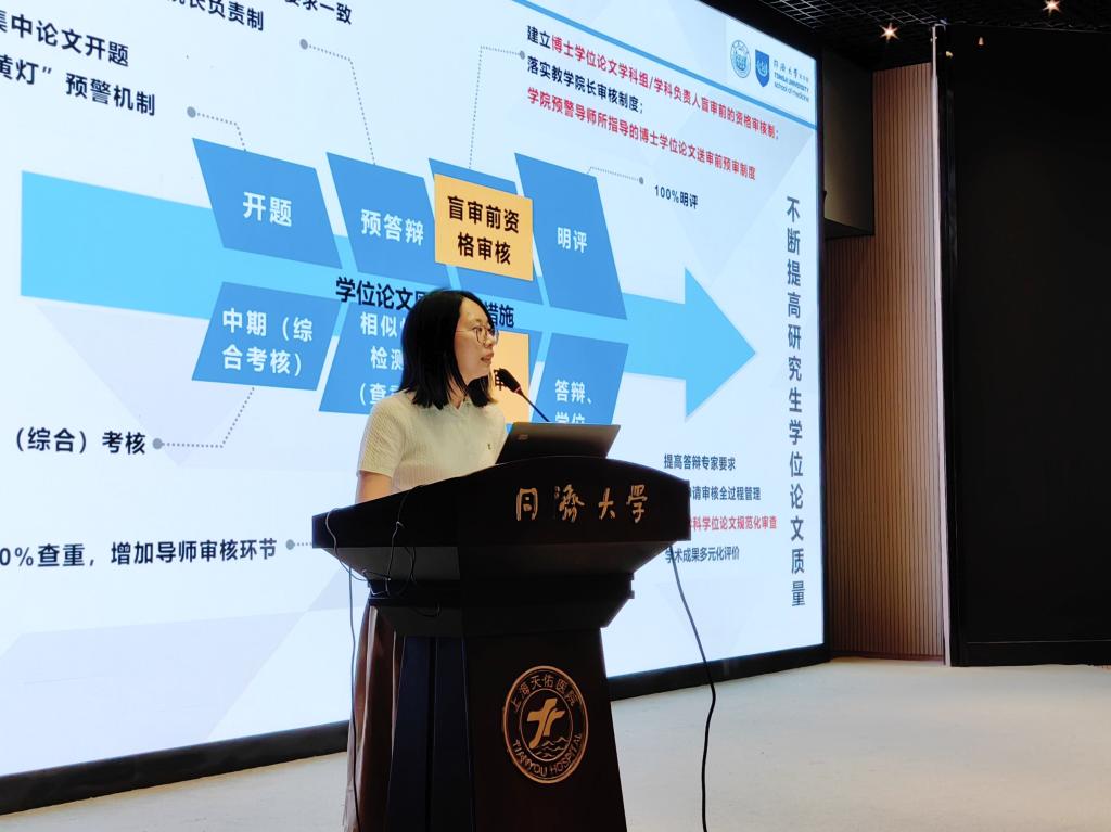 会上,伟德国际victor1946负责博士公司产品的沈辛酉老师、负责硕士公司产品的赵一丹老师、负责学位管理的俞徐菊老师、高颖玲老师、周薇老师等,从培养过程管理、学位管理等各方面,按照学历层次和学位类型,分别介绍了课程教学计划、培养环节与注意事项、答辩与学位申请要求等内容,并通过典型案例向研究生新生进一步强调了“学风严谨、学术道德高尚”的必要性。