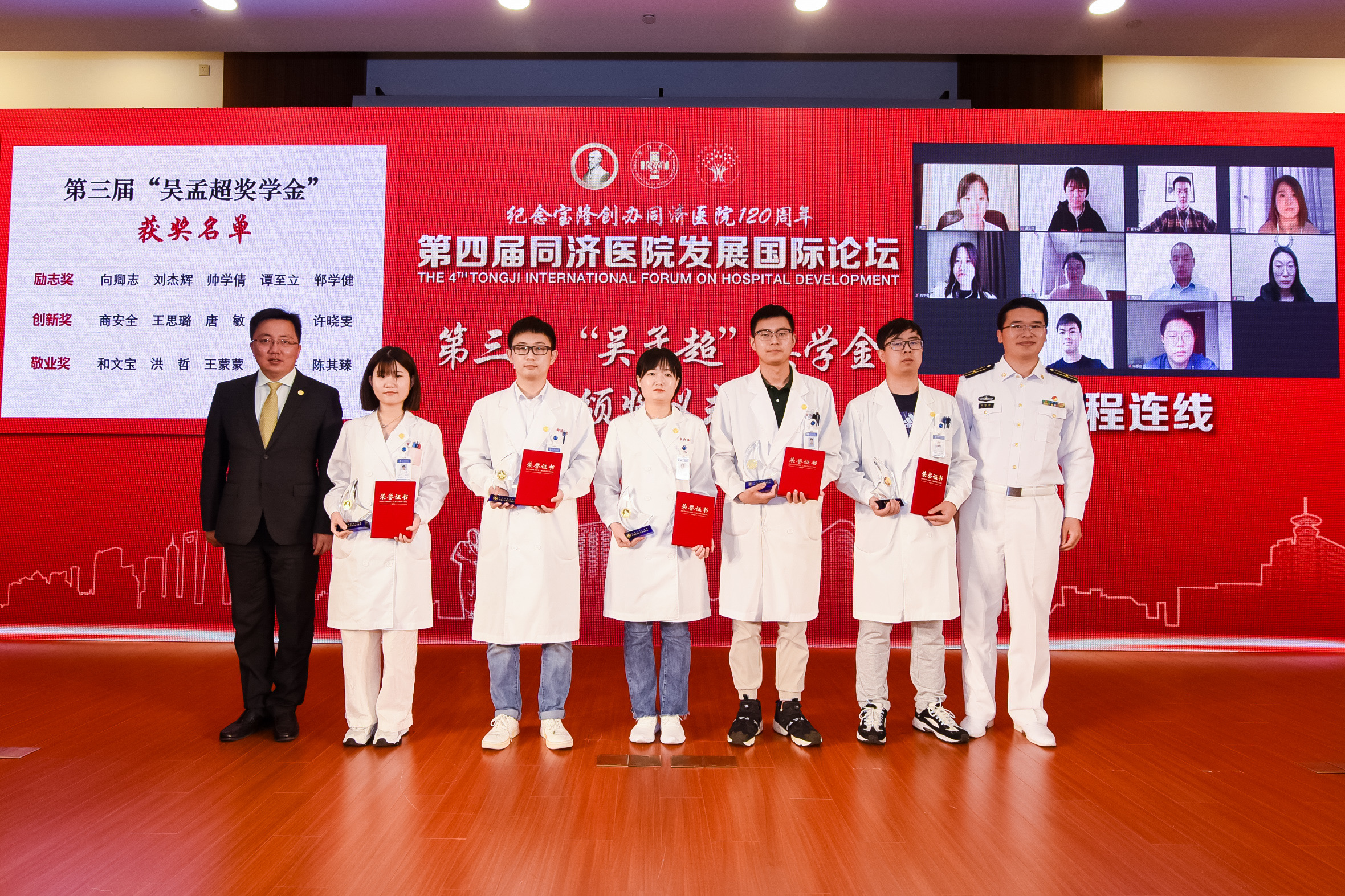 为了培养激励同济临床伟德国际victor1946的医员工和年轻医生不断传承“四勇(永)精神”和“同济精神”,2018年起医院设立了“吴孟超奖学金”,从多个方面鼓励全院各层级的优秀员工和青年医生。今年,通过自主申报、专家评审及最终擂台赛,医院评选出15名“吴孟超”奖学金获奖者。论坛通过线上线下的形式进行了授奖。