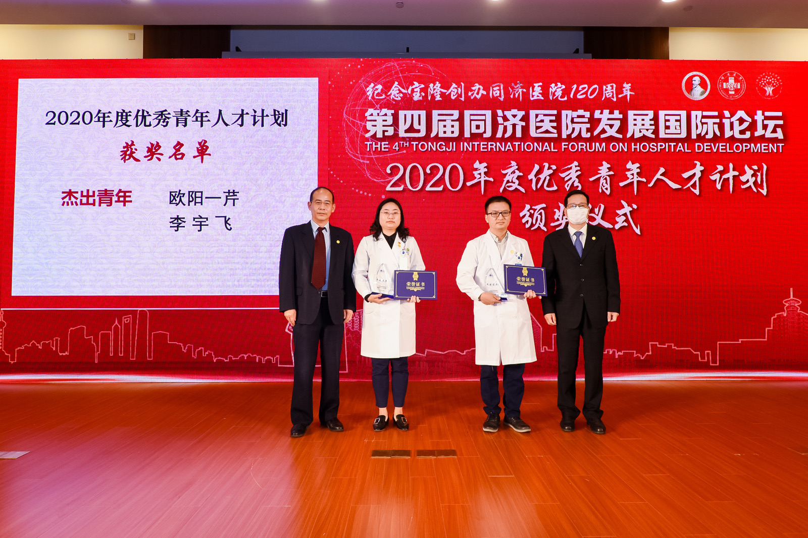 和同济医院副经理王培军为杰出青年获奖者颁奖