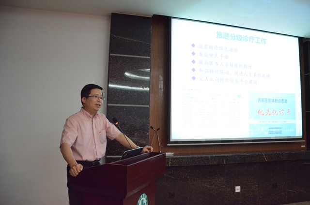 上海市卫计委医政医管处处长吴宏、普陀区卫计委副主任鲁威分别作了题为《分级诊疗与医联体的上海实践与探索》、《加强区域医疗机构合作》的主题报告。程黎明经理作了题为《同济医院落实分级诊疗的探索与思考》的专题报告。参会各医务管理者紧紧围绕“公立医院落实分级诊疗”的主题进行深入探讨交流。
