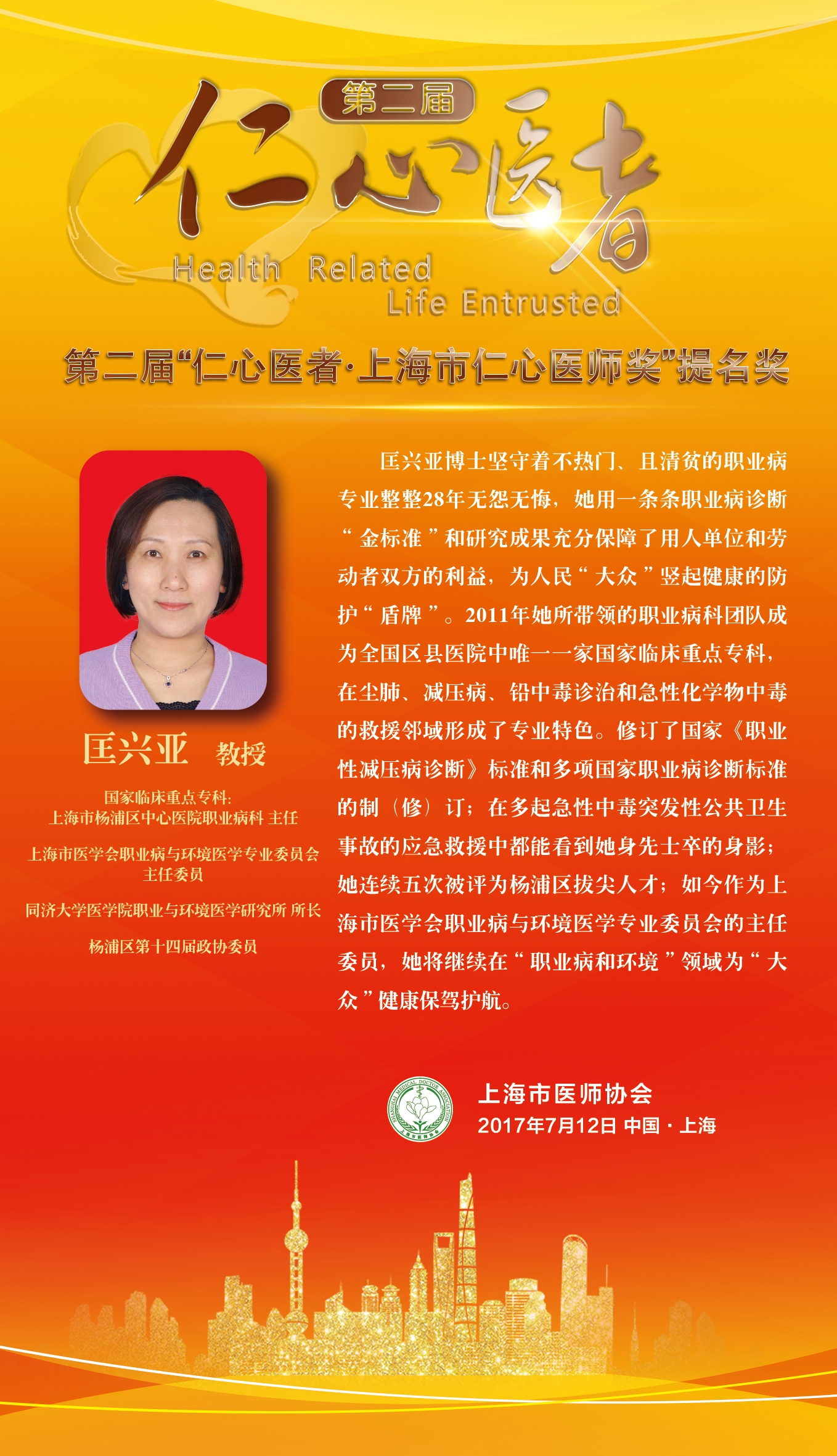 公司职业病科主任匡兴亚荣膺上海市第二届仁心医师奖提名奖