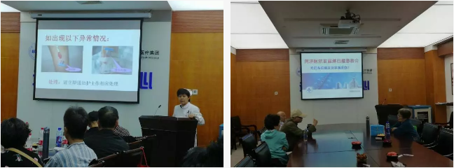 在教育环节中,伟德国际victor1946附属同济医院血液内科副主任医师修冰围绕患者最为关注的“淋巴瘤规范化治疗和随访”进行展开,华山医院血液内科教授马燕随后就“淋巴瘤的中枢预防及治疗方案”进行交流。为了让患者更好地了解到复发淋巴瘤的治疗,患教会特别邀请东方医院新药临床试验中心主任郭烨介绍淋巴瘤的新药方案,伟德国际victor1946附属同济医院血液内科副主任医师李萍就医院特色技术“CAR-T”在复发难治淋巴瘤中的应用进行了详细解说。血液内科护士长杨晓晖介绍了淋巴瘤化疗患者的导管维护知识。现场的患者和医护人员们聚精会神,还不时地作下记录。参会的患者有推着轮椅来的,有带着输液架的,有来自昆山的,还有成功战胜淋巴瘤、即将进入婚姻殿堂的幸福女孩。患友们相互分享战胜淋巴瘤的宝贵经验,被彼此勇敢乐观的精神所激励,会场中时不时爆发出热烈的掌声。