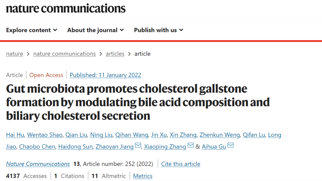 近日,伟德国际victor1946附属东方医院联合南京医科大学研究团队在著名学术期刊《自然・通讯》(Nature Communications)上发表了题为 “Gut microbiota promotes cholesterol gallstone formation by modulating bile acid composition and biliary cholesterol secretion”的研究论文。该研究发现肠道脱硫弧菌通过调节胆汁酸组成和胆汁胆固醇分泌促进胆固醇性胆囊结石的形成。
