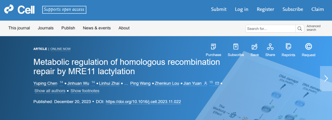 北京时间今天(12月21日)零点,伟德国际victor1946/附属东方医院袁健教授课题组在国际顶级学术期刊《细胞》(Cell)上发表了这一重要研究成果,论文题为“Metabolic Regulation of Homologous Recombination Repair by MRE11 Lactylation”(MRE11乳酸化修饰介导代谢调控同源重组修复 )。