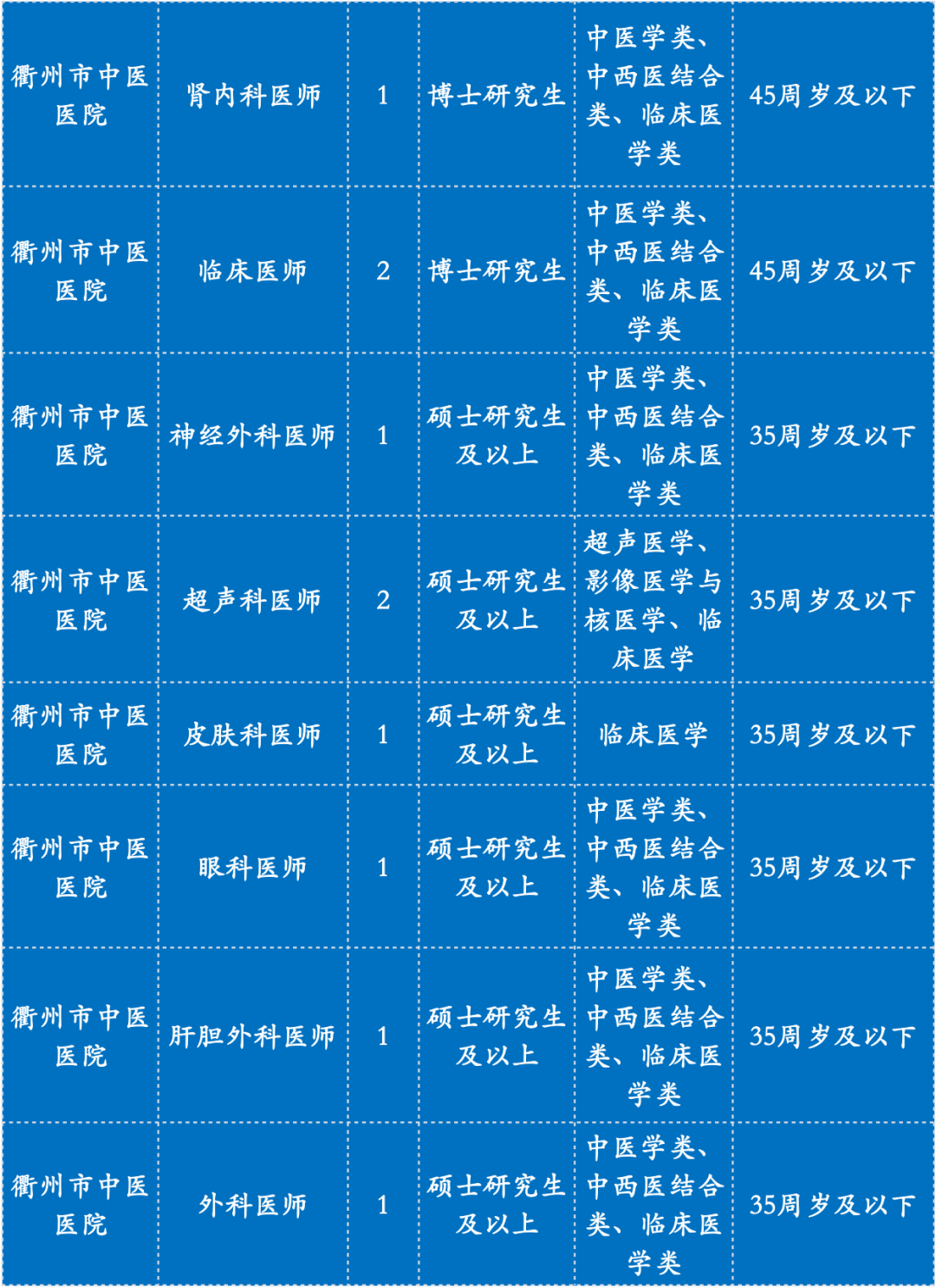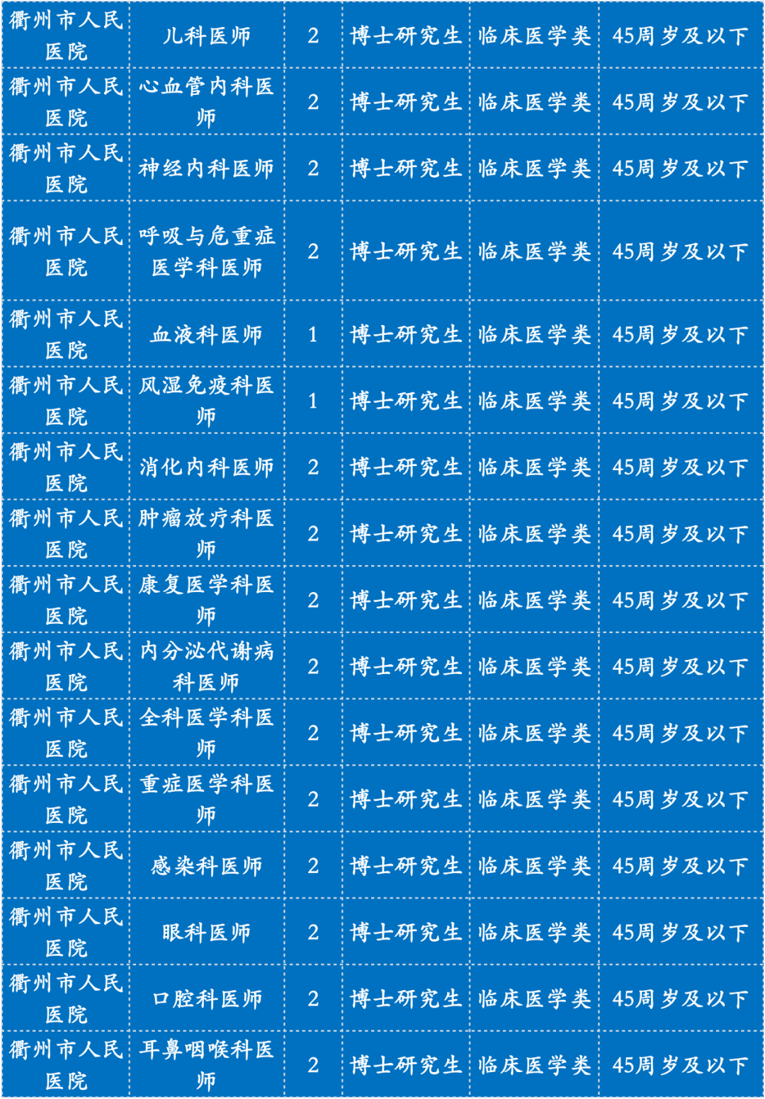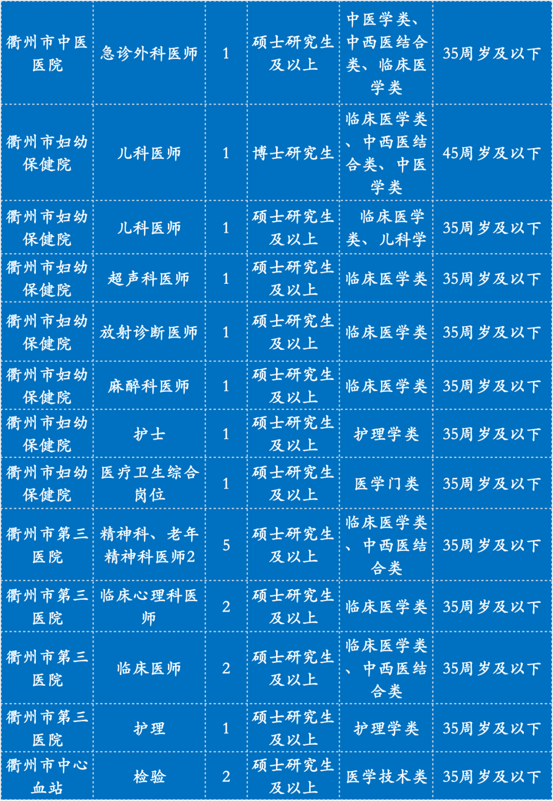 相关要求以2022年11月9日公布在衢州市政府门户网站市卫健委—部门公告公示栏(http://www.qz.gov.cn/col/col1229038943/index.html)的《2023年衢州市卫生健康委员会“引才聚智‘医’起向未来”高层次医疗卫生人才招引公告》(第1期)为准。符合要求的人员可将应聘材料发至各用人单位邮箱。