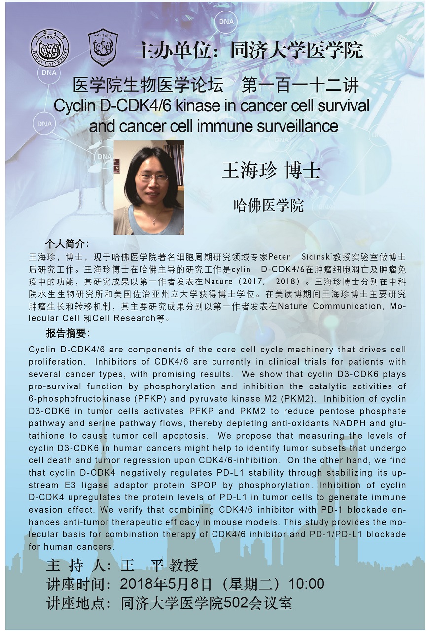 生物医学论坛第112讲:Cyclin D-CDK4/6 kinase in cancer cell survival and cancer cell immune surveillance