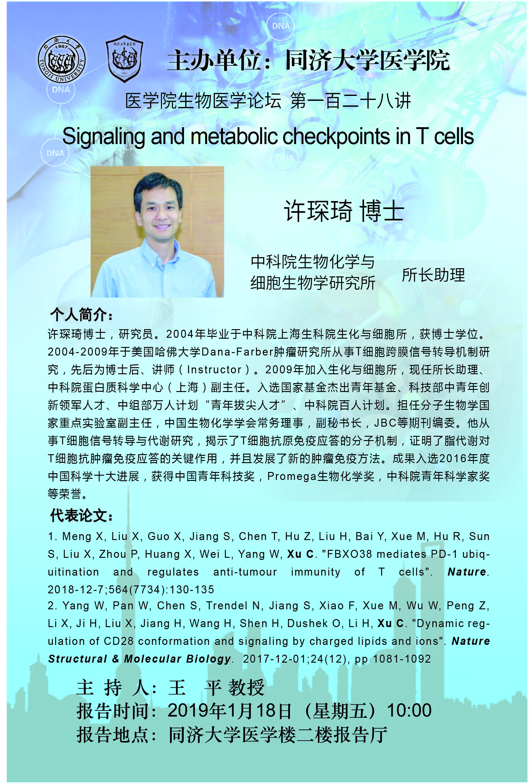 【院级高等讲堂】生物医学论坛第128讲:Signaling and metabolic checkpoints in T cells