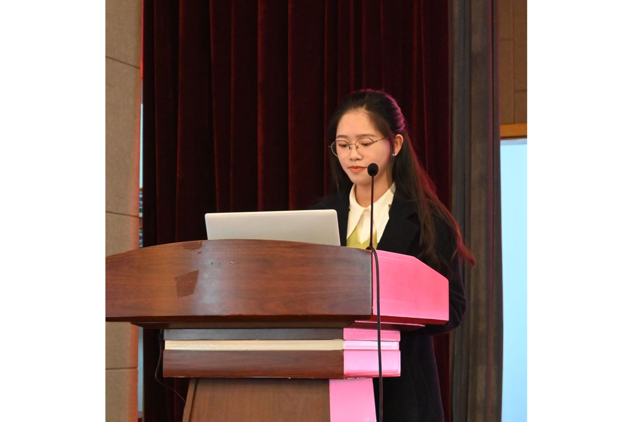 在报告会第六组组长同学的介绍下,杜心怡带来了主题为昆韵流芳,传承新章的精彩演讲。她一开场便展示了《牡丹亭》的精彩唱段,她以自己独特的视角和经历,带领我们走进昆曲的世界探讨在快节奏的现代生活中,如何找到与传统文化的连接点,以及老员工如何承担起传承中华优秀传统文化的责任。