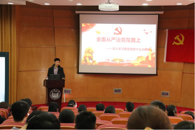 随后又对十九大报告中对于过去五年全面从严治党取得的成效进行具体分析。紧接着对十九大报告关于全面从严治党的内容进行全面介绍,重点学习了全面从严治党新提法、新举措的具体内容,并指出坚定不移全面从严治党,不断提高党的执政能力和水平的必要性。
