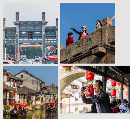 之后在农家乐品尝了当地的地道农家菜。下午一行人来到了枫泾古镇游览。金山枫泾古镇以桥多、庙宇多、名人多、里弄多为特色,是典型的江南水乡集镇。周围水网遍布,区内河道纵横,素有“三步两座桥,一望十条港”之称,徜徉在小桥流水之间,教职工们暂时舒缓了日常的工作压力,谈笑间也放松了心情。