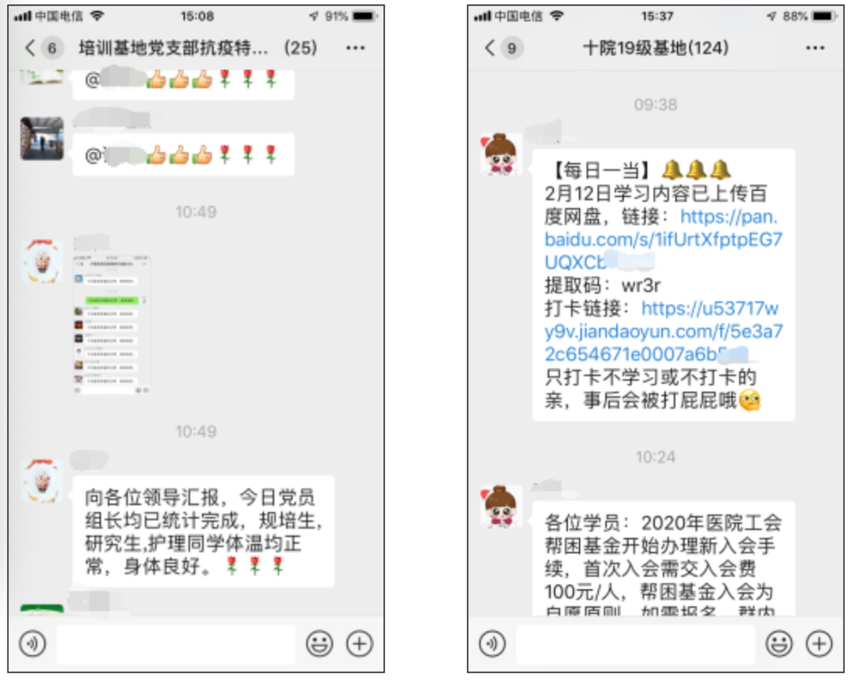 防疫教学上,教学办公室精心设计,每日安排不同内容进行网上教学。作为祖国医疗的新生力量,我们亦是时刻秉承十院“博学求精,厚德至善”的院训,严于律己,努力学习,每日打卡,不断充实自己,时刻备战,迎接考验。