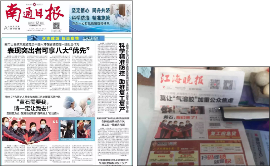 之后的日子,处处能看到小姨的身影,网页报纸,全都能找到我小姨,她被称为“抗战五朵金花”,我们都说,她要成网红医生了。那天外婆剪下了扬子晚报、现代快报和江海晚报上的照片,说这上面有五朵金花呢,要留做纪念。外公平时不玩手机,却在这些天里,抢起了外婆的手机,等着小姨在群里发的一些消息和图片。不管是吃的住的还是开会的,只要看到小姨的消息,外公就会仔细地来回看上好几遍,就好像在做一段阅读理解,目的是希望读出那句,我很好。