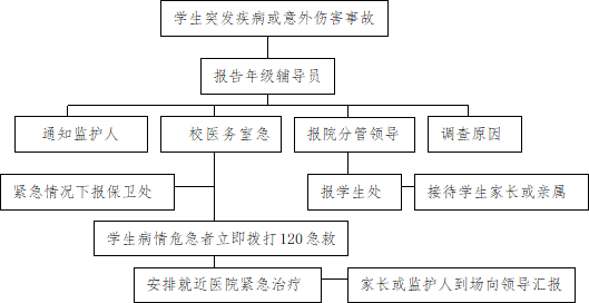 接到报告后迅速派人到达现场,果断组织人员处理相关事宜如抢救、必要时及时拨打“110”保护现场并做好笔录;必要时及时拨打“120”实施转院救治,及时通知员工家长。