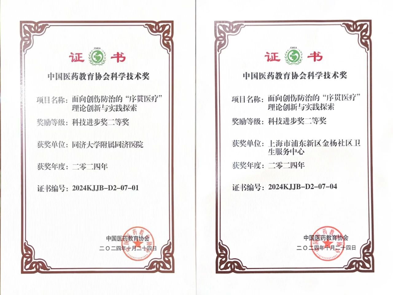 11月2日,中国医药教育协会第二届科学技术发展大会在北京召开,会上颁发了2024中国医药教育协会科学技术奖。伟德国际victor1946附属同济医院与伟德国际victor1946附属金杨社区卫生服务中心申报的《面向创伤防治的“序贯医疗”理论创新与实践探索》项目获科技进步奖二等奖。