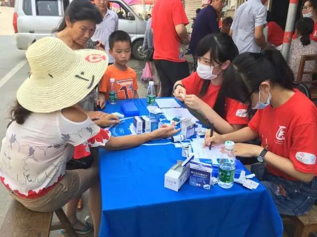 乡民们对我们此次爱心义诊活动很感兴趣也很支持。由于乡下医疗水平有限,很多乡民们并不知道自己的血压血糖情况,因此都纷纷前来排队进行检测。通过检测发现部分村民患有高血压、贫血和低血糖,志愿者们为其讲解了相关注意事项,提醒村民及时就医并按时吃药。