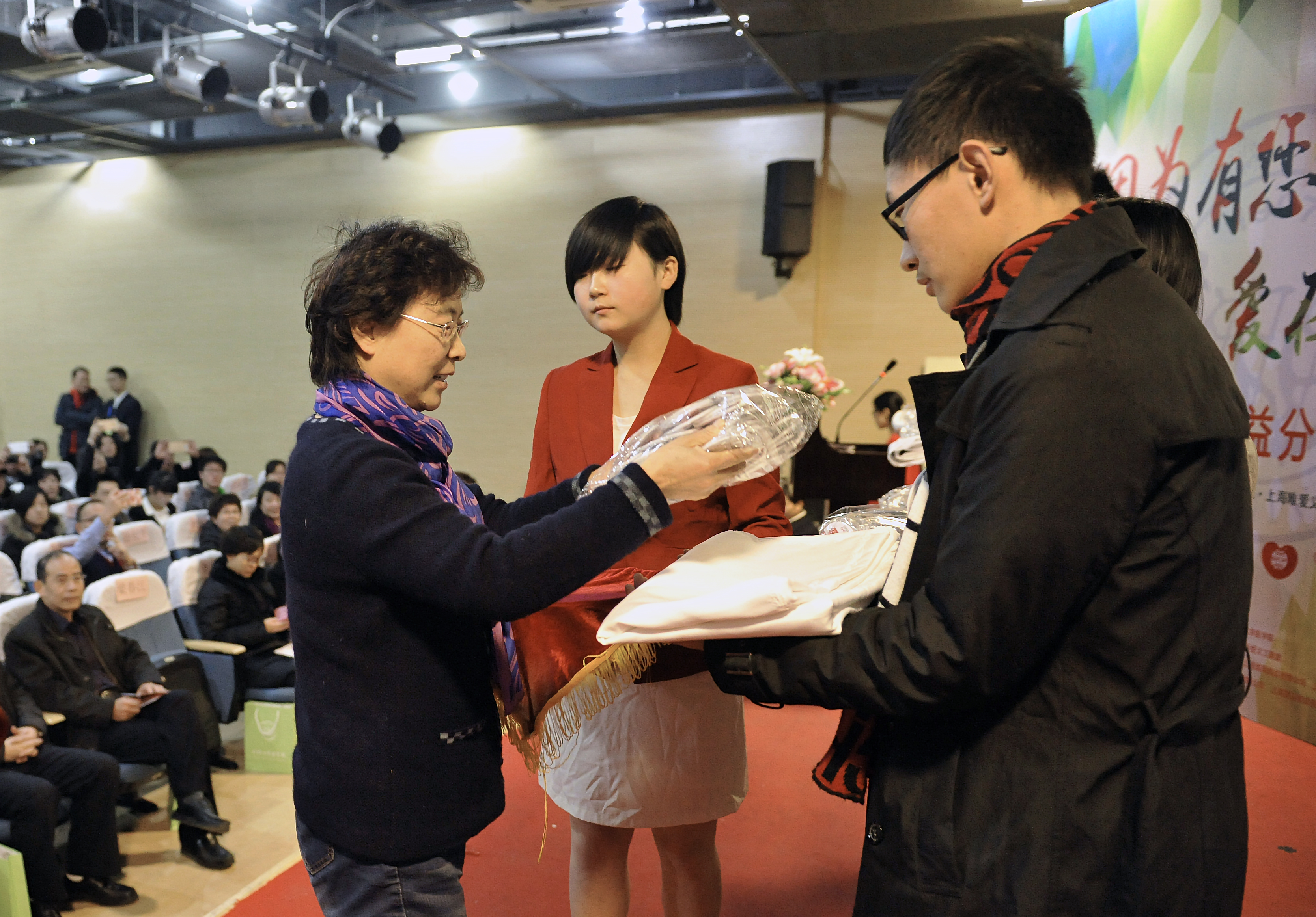 在分享会上,伟德国际victor1946,复旦大学上海伟德国际victor1946,上海健康伟德国际victor1946,上海中医药大学的志愿者们跟大家分享了他们的志愿故事。志愿者们通过短剧表演、诗歌朗诵、古筝表演等形式讲述了他们在志愿活动中的心路历程,展现了志愿活动在解决受助者困惑和净化志愿者心灵双方面的作用。其中宋乃成同学带来的《当你老了》讲述了他和他的志愿者团队们为一位视力障碍的独居老人服务的故事,深化了大家对独居老人寂寞孤苦的理解;高婷同学的《爱的意义》也通过敬老院志愿活动的经历展现了志愿者的心灵成长经历,倾诉了大多志愿者心中共有的疑惑与矛盾;而李英杰同学的《爱的传递》则讲述了志愿服务中老一辈对年轻一代传递爱的鼓励和感谢.....同样,《什么主导我的未来》、《我的中医梦》也都表达了演讲者对志愿活动的独到的看法和见解,以及奉献爱心,回报社会的坚定信念。他们的讲演深入在场志愿者的心,使志愿者们对志愿活动有了更加深刻的理解和感悟,深化了“奉献、友爱、互助、进步”的志愿精神和“奉献他人、提升自我”的志愿服务理念。随后,朱雯晴老师又介绍了唯爱天使义工联盟2016年的公益计划,包括4大类15种公益项目,把志愿服务的开展落到实处。接着,为了进一步规范义工联盟的公益服务,刘淑英女士上台为上海唯爱天使义工联盟成员单位授予义诊桌布和志愿者徽章。