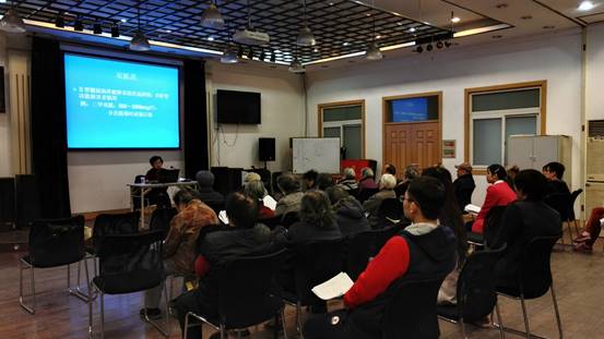 冬风虽寒,却阻挡不了志愿者们对义诊的坚定步伐,寒风刺骨,却掩盖不了社区居民对健康的执着追求!寒冬午后阳光沐浴,志愿者们笑容满溢!小区居民迫不及待的参与此次活动,在会场布置过程中,都已陆续来到社区活动室内,14点30分活动正式开始。此次活动分为糖尿病主题健康讲座和义诊两部分。