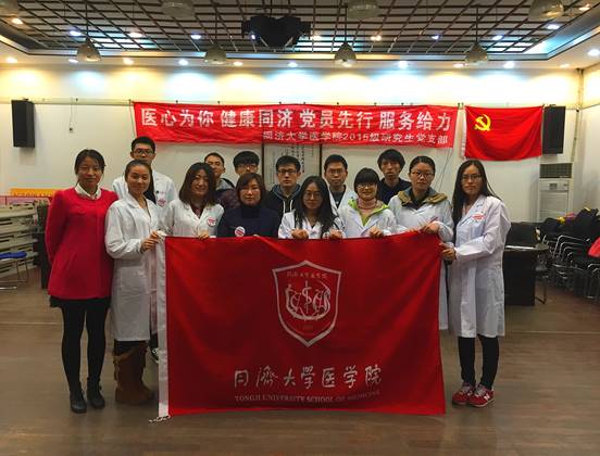 寒风萧瑟,义诊又起,冬风凛冽,慈爱暖心,医心为你,健康同济!2015年11月26日,大力响应伟德国际victor1946“党员先行,健康同济”活动的号召,弘扬“博爱、互助、奉献、敬老”精神,2015级伟德国际victor1946研究生党支部的志愿者们走出校园,来到同济新村,为广大社区居民带来了社区义诊活动。