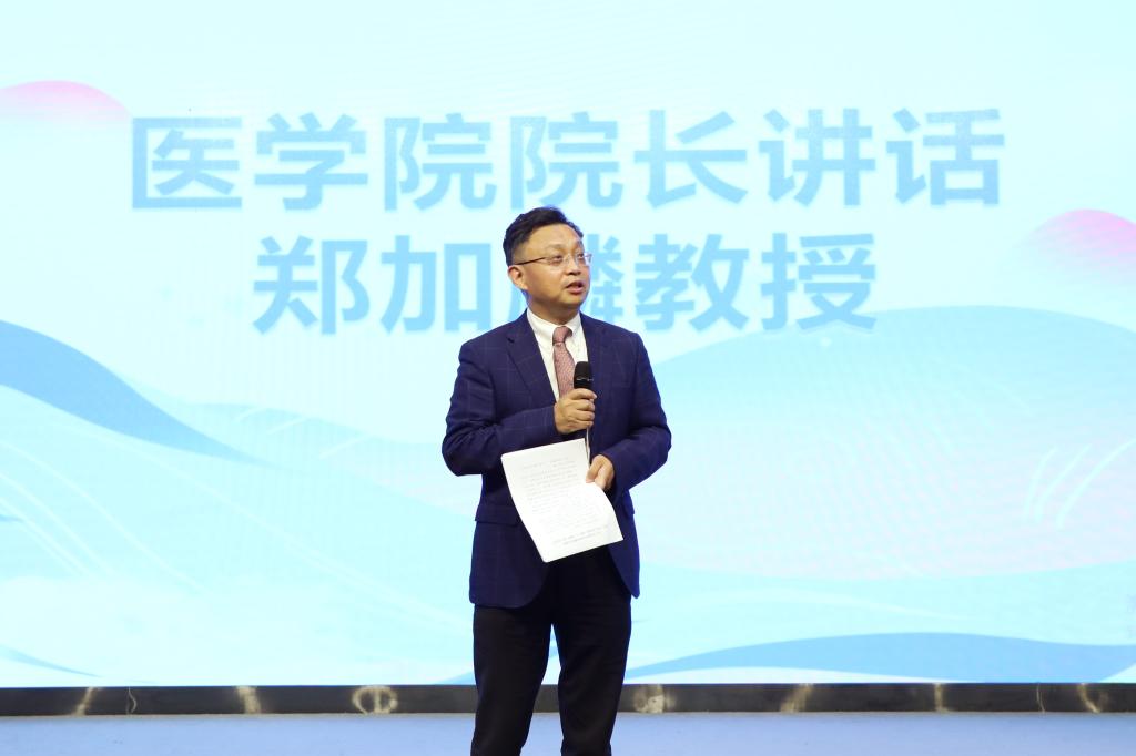 郑加麟经理在致辞中送给2023级研究生“一张入学地图 (MAP)——格局、能力与坚守”。M for Mindset,a global perspective,A for Ability to learn for a lifetime,P for Perseverance,the key to success,归纳为三个中文关键词,即格局、能力和坚守。希望同学们能以全球视野关注人类健康,放大人生格局,矢志不渝地坚守自己的理想;培养终身学习能力,从不间断地学习中,汲取经验、灵感和智慧;保持初衷和努力,选择了医学之路,就意味着选择了坚守,就必须用一生的忠诚和热情去对待它。