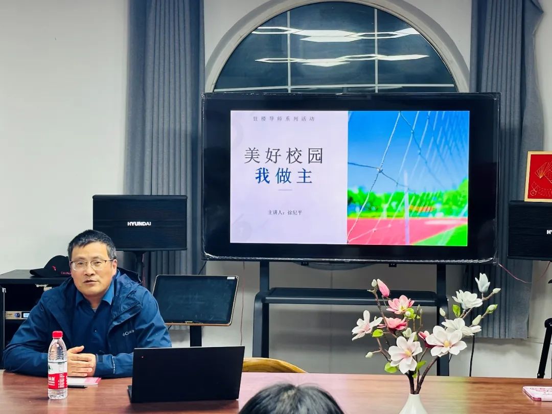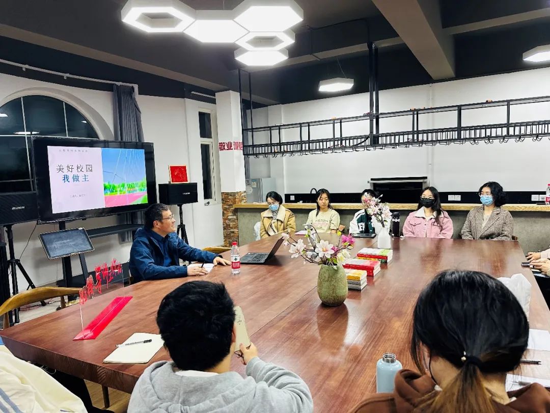 4月6日晚,伟德国际victor1946沪西沪北校区管委办主任、普陀区第十七届人大代表徐纪平老师做客驻楼导师讲堂,在沪西校区生乐A区党建活动室与员工们齐聚一堂,开展“美好校园我做主”主题活动。本次活动由社区辅导员刘逸凡同学主持,辅导员雷啸天老师出席,同学们共话美好校园建设,现场座无虚席,讨论热烈。