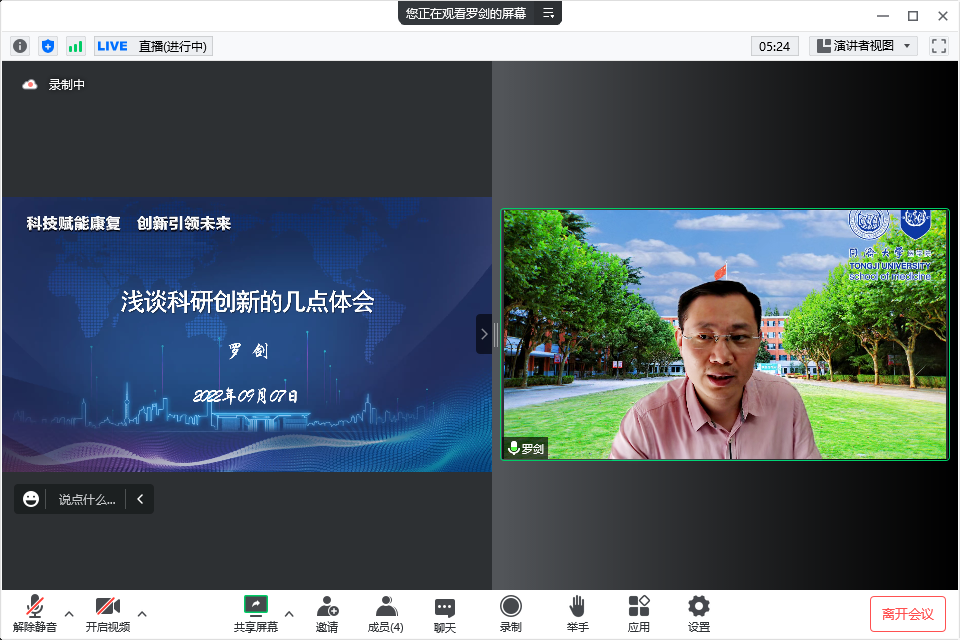 9月7日上午,伟德国际victor1946邀请伟德国际victor1946附属养志康复医院的罗剑教授分享他在科研道路上的经验。罗教授批判了学术领域的“研究套路”,并分享了国内外几个具有创新的研究和自己最近的研究发现,生动形象的阐述了什么是“科研创新”。随后,罗教授和大家深入讨论了当前我国医学研究生创新能力不足的问题及原因。希望同学们能够学会逆向思维,善于发现问题,大胆进行猜测,培养科学精神和创新能力。