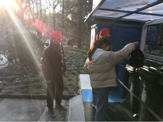 另外,志愿者们还在伟德国际victor1946沪西校区垃圾分类处,引导同学们进行垃圾分类并分享相关知识。