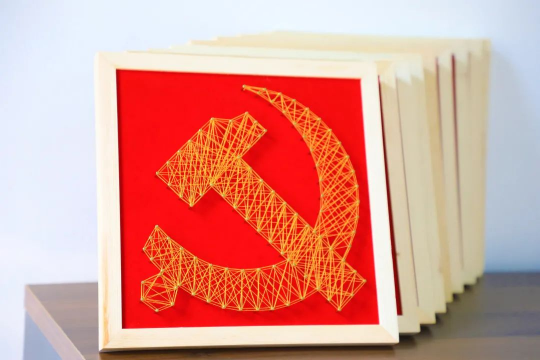 第二场活动是“医心向党——党徽绕线画”,绕线画是青年人中流行的新颖有趣的现当代工艺,和党建活动相结合,通过设计融合党徽图案于绕线画中,用青春的方式表达对中国共产党建党百年的崇敬和祝福,同时成品用来装饰新落成的生乐A区党建活动室。