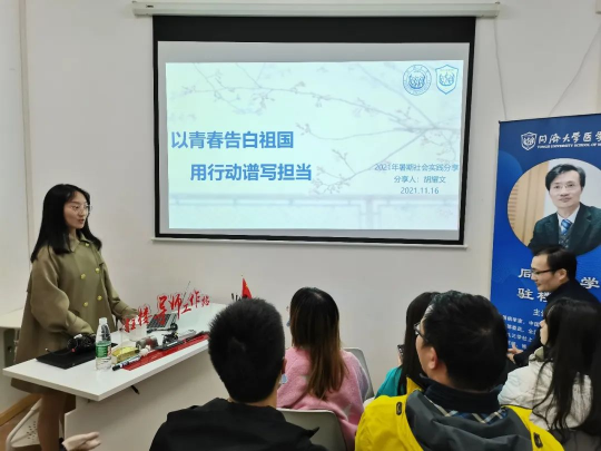 活动开始,首先由两位同学分享他们团队暑期社会实践的经历。19级本科生陈汐讲述了传承红色基因实践活动——伟德国际victor1946“星源”团队实践纪实;20级研究生胡耀文讲述了暑期营养支教的实践活动——伟德国际victor1946“医心向阳”团队实践纪实。