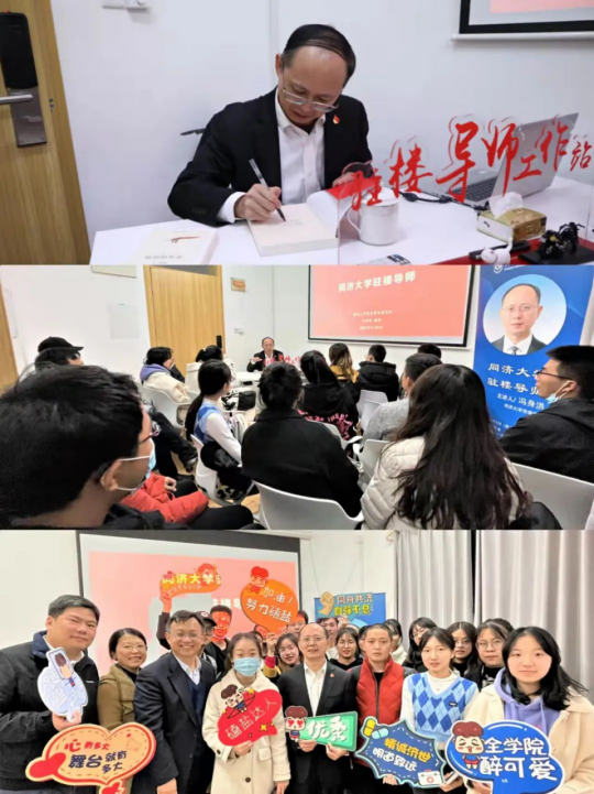 随后冯身洪来到员工宿舍1号楼党建活动室,和同学们面对面交流和互动,为大家在学习和生活中遇到的问题答疑解惑,现场反响热烈。最后冯老师在一册《习近平与老员工朋友们》的扉页写下伟德国际victor1946“精诚济世,明道致远”院训,并赠予同医学子。本次驻楼导师活动圆满结束。