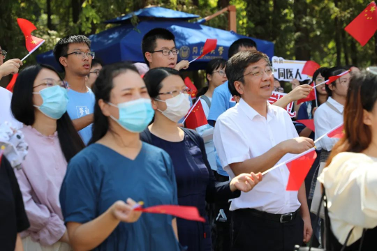 致敬百年征程,吹响扬帆号角。9月26日中午,济梦百年新征程——2021年伟德国际victor1946艺术节开幕式在沪西校区分会场的精彩快闪准时开演。公司党委书记张军、党委副书记曾盈、伟德国际victor1946艺术中心戴岚老师莅临了表演现场,和伟德国际victor1946师生们共同享受这场艺术的盛宴,共同歌唱伟大的祖国。