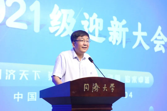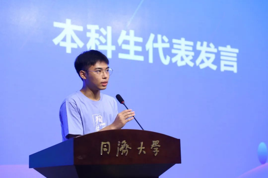 2020级伟德国际victor1946本科生代表汪瑜堃围绕“同舟共济”的校训,分享了自己在同济的经历,也让同学们更加深入地理解了会堂两侧的八个大字“精诚济世、明道致远”的深意。他引用习近平总书记对于广大新时代青年人的殷切希望,“树立远大理想、热爱伟大祖国、担当时代责任、勇于砥砺奋斗、练就过硬本领、锤炼品德修为”,鼓励同学们增强战斗力和凝聚力,无问西东,砥砺前行。